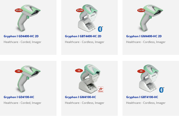 Gryphon healthcare models feature Disinfectant-Ready enclosures designed to withstand daily cleaning with harsh disinfectant chemical solutions to effectively fight germs and bacteria. Available in corded and cordless versions. Cordless products are available with Datalogic's STAR Cordless System or Bluetooth® wireless technology for radio connectivity.
