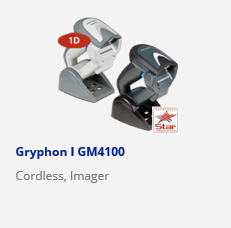 The Gryphon 4100 Series of linear imagers offer fast reading and decoding speed on 1D and linear bar codes. These devices combine top performing and distinctive features such as reading capability, connectivity, durability, and ergonomics in a perfect balance. Cordless products are available with Datalogic's STAR Cordless System or Bluetooth® wireless technology for radio connectivity.